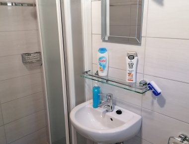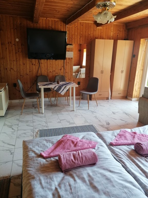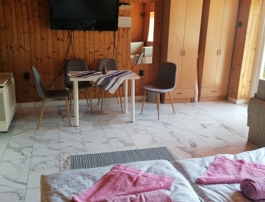 Közvetlen a Tó partján található az apartman, az épület felső szintjén lett kialakítva a 45 m2-es szoba étkezősarokkal, modern fürdőszoba zuhanyzóval, konyhasarokkal.